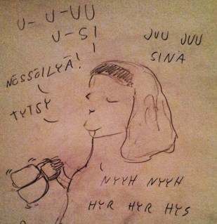Tuntematon taiteilija ikuisti esiintymiseni 20.2. Poetry Slamissa.