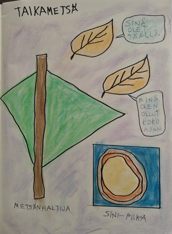 Sini-Piika kysyi: “Miksi minä tunnen itseni niin erilaiseksi?” Metsänhaltija ei vastannut heti. Hän antoi kysymyksen laskeutua sammaleeseen.