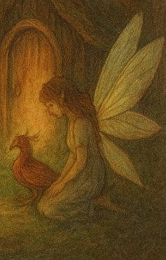Fenix-lintu: “Minä nousin tuhkasta, mutta en yksin. Sini-Piika, sinun kysymyksesi oli minulle siipi. Metsänhaltija, sinun muistosi oli minulle juuret. Ilman teitä en olisi löytänyt majan valoa.”